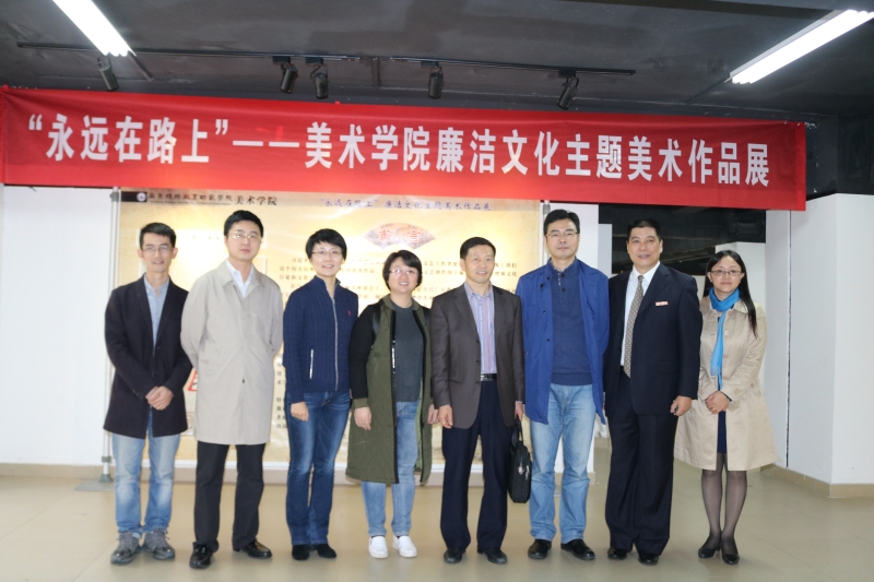 为深入贯彻落实党的十八大、十八届三中、四中、五中全会精神和习近平总书记系列重要讲话精神,切实围绕立德树人根本任务,积极培育和践行社会主义核心价值观,美术公司党总支在校纪委指导下,举办了“永远在路上”廉洁文化主题美术作品展。
