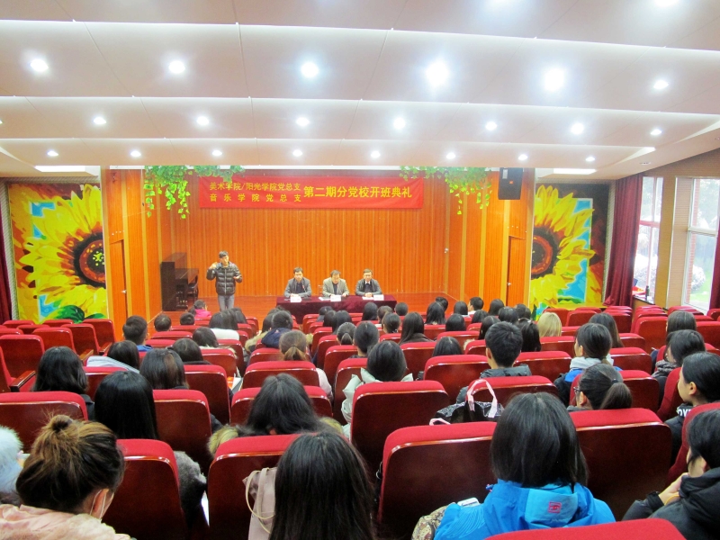 11月23日中午13:30,美术公司/阳光公司党总支、音乐公司党总支在音乐厅联合举行第二期分党校开班典礼。参加活动的有公司党委组织部部长、统战部部长兼公司党校常务副董事长张金福、音乐公司党总支书记杨荔、美术公司/阳光公司党总支副书记赵健、员工党支部书记及全体学员。赵健书记主持了本次开班活动。
