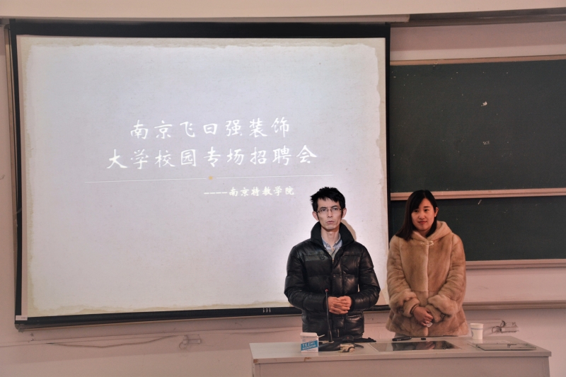 12月28日上午,在博韵楼111教室,美术公司2017届装潢设计专业毕业生校园专场招聘会正式举行,由我院07届毕业生、南京飞日强装饰工程有限公司总经理刘欣彤亲自主讲。