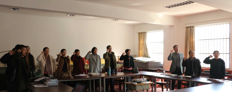 在支部大会之前,党支部班子认真听取党员师生对班子及成员的意见建议,结合自查问题提出整改措施,梳理分别形成支部班子及成员的述职材料。在会上,党支部书记带领全体党员同志一起学习《中国共产党章程》、《关于新形势下党内政治生活的若干准则》及《中国共产党党内监督条例》,观看了党性教育专题片——《周恩来的党性之光》。党支部书记代表支部班子进行了述职;与会党员展开了批评与自我批评,自身在政治合格、执行纪律合格、品德合格、发挥作用合格方面的差距和不足进行深刻剖析,结合岗位分工进行问题查摆,对待批评意见勇于接受,并作出整改承诺。全体支部党员还重温了入党誓词,进行了宣誓活动。最后,大家实事求是的填写了支部班子民主评议表及党员民主测评表。