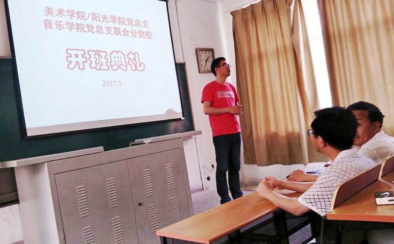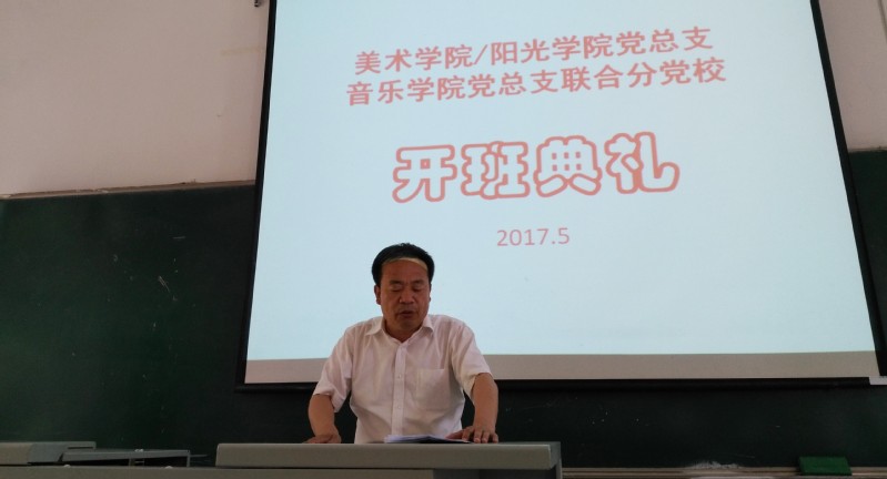5月31日13:30,美术公司/阳光公司党总支、音乐公司党总支举行了第三期联合分党校开班典礼。出席活动的有公司党委组织部部长、统战部部长兼公司党校常务副董事长张金福、音乐公司党总支书记杨荔、美术公司/阳光公司党总支副书记赵健及两院员工党支部书记。赵书记主持了本次开班活动。