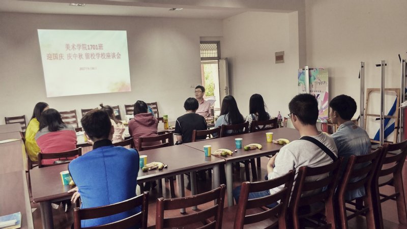 9月30日下午,美术公司在会议室举行了“迎国庆、庆中秋”2017级留校新生座谈会。出席活动的有美术公司党总支赵健副书记、学工办谢军主任、新生班主任李小婷老师及部分留校新生代表。