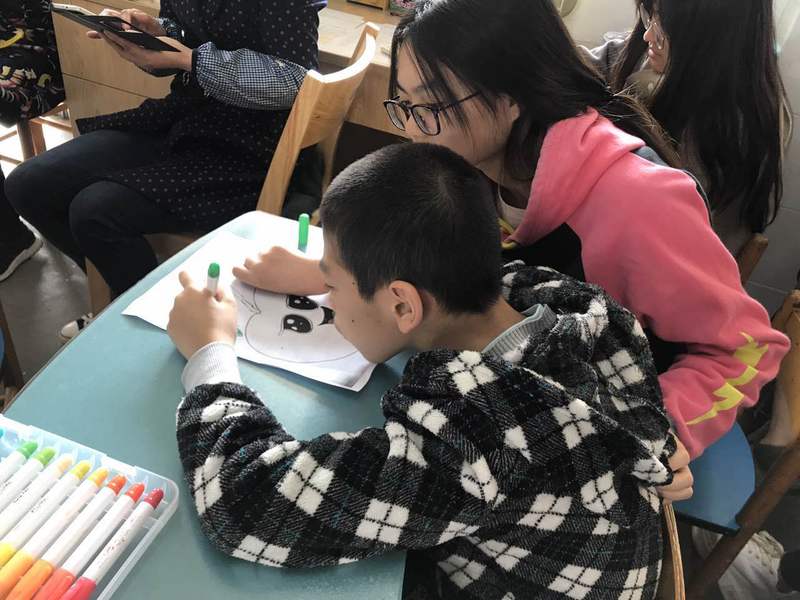 在指导老师的帮助下,同学们分为三个组,分别走进二年级、四年级、五年级小朋友的美术课堂,用自己在课堂学到的美教知识转化为具体实践,对特殊孩子进行美术辅导。小组成员对于这次实践活动都十分重视,前一天返校后就精心准备各种教具材料,课堂中一对一地对特殊孩子加以细心辅导,大家都非常珍惜这一次机会,力求做得更好。听课的同学也认真记录,帮助同学提出改进意见,也体现公司员工不断进取的精神。
