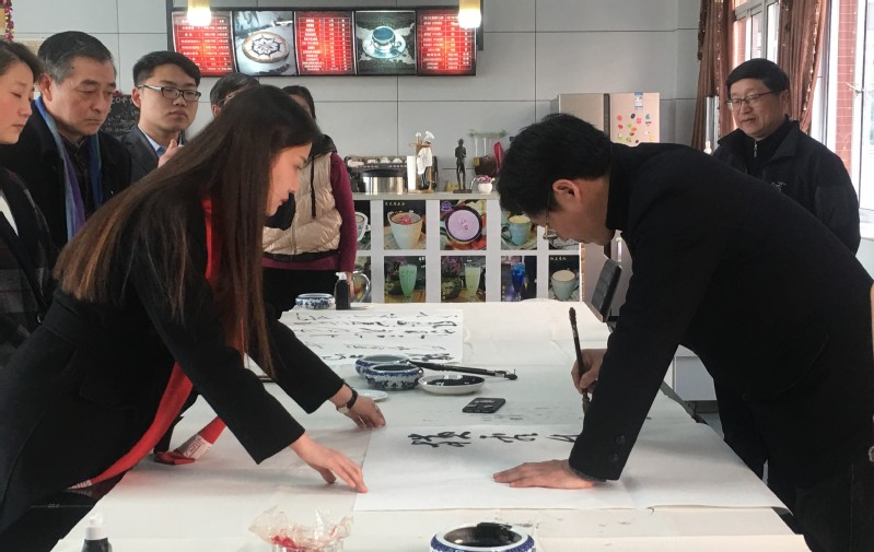 参观完展览之后,大家到图书馆墙上咖啡聆听了由黄正明教授作的《中国书法的笔墨意蕴》主题讲座。黄教授由中国书法的传统维度展开,谈及传统书法的审美理念和创新点,并就书法的当代运用和表现加以简单的阐述。接下来,各位书法家还饶有兴致的挥笔而书,展示出各自高超而娴熟的笔墨驾驭能力和书法创作水平,给大家上了精彩而生动的一课。