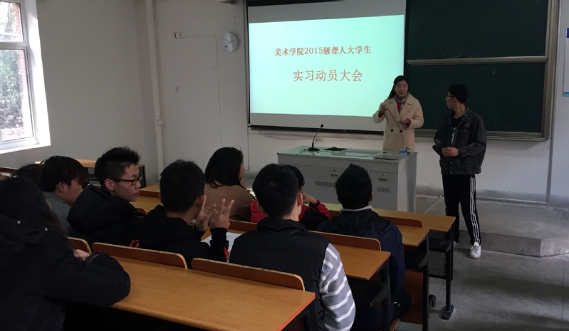 12月27日上午,公司服装专业、电脑设计专业毕业生实习动员大会在博韵楼111顺利召开。美术公司辅导员王乐华老师、王雪梅老师及2015级全体聋人员工参加大会。会议由辅导员老师王乐华主持。