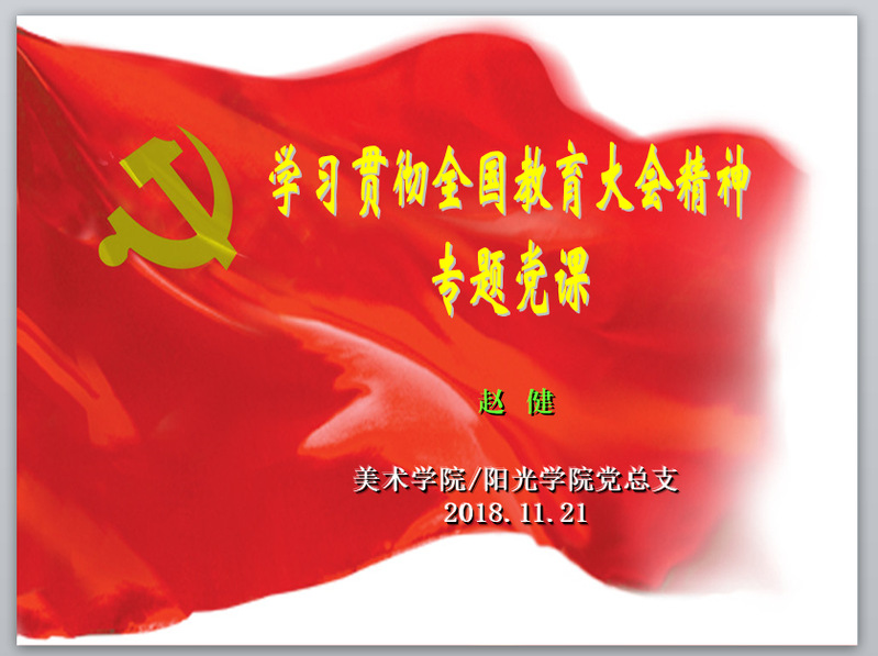 2018年11月21日下午,美术公司/阳光公司党总支组织全体党员开展了学习贯彻全国教育大会精神活动,由赵健副书记为大家上了一堂专题党课。