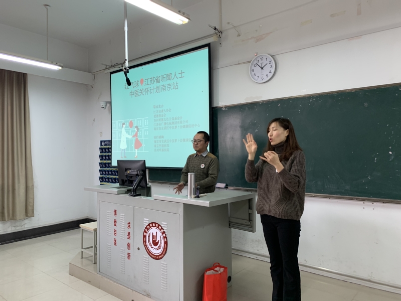 11月28日,“红气球”---江苏省听障人士中医关怀计划项目组来到公司美术公司,组织听障老员工开展了一场边学边做的中医授教活动。首次参与这个项目的50名听障老员工在手翻老师的帮助下,认真听老师讲解了针灸、艾灸等中医治疗手段,并亲身体验了艾灸治疗。