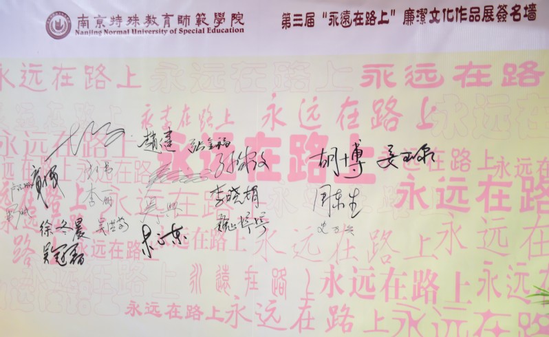 由公司纪委指导,美术公司/阳光公司党总支主办、各党总支协办的“永远在路上”廉洁文化作品展,经全校师生共同努力,已成功举办两届。展览立足公司人才培养专业特点,将艺术教育与廉政建设有机结合,已逐步成为公司校园廉洁文化建设的品牌活动。本次展览主题鲜明、艺术精湛、风格多样,经过为期两个多月的精心准备,汇集了公司师生的百余幅主题创作作品,涵盖了书法、绘画、剪纸、招贴、摄影等多种艺术形式。全体参展师生以饱满的政治热情,高尚的艺术情操,精心的创作表现,共同讴歌了中华廉政文化,进一步彰显了特殊教育的大爱无私,残疾人高等教育的融合无间。让全校师生在感受艺术魅力和文化情怀的同时,获得“博爱特师”独特的艺术启迪和教育,使我们每个人的精神操守及艺术修养得到感染和升华。