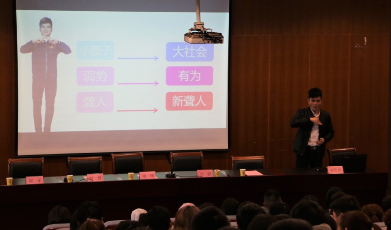随后,杜依泽进行了主题宣讲。他向大家介绍了从事的职业头疗师工作,谈自己是如何从一名普通员工成长为企业培训主管的历程。他希望大家要做一个新时代聋人,要勇敢、坚强、积极、自信,勇敢地走出小圈子,接受健全人和团队合作,用开放的心去拥抱世界。展现了新时代聋人自立自强、勇敢拼搏的良好精神风貌。大家对“侗医无声头疗”项目产生了极大的兴趣,对于同学们提出的疑惑和迷茫,杜依泽也耐心作答。谢理事长与在场的聋人同学们一一击掌,希望他们不要自卑,勇于接受挑战,也欢迎同加入他们的团队!