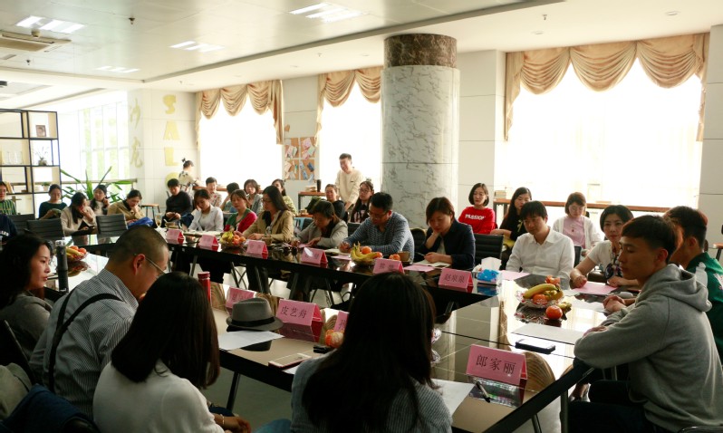 为了进一步加强残疾人高等艺术教育工作,加强学术交流和问题研究,提升美术公司听障老员工人才培养工作水平,2019年5月8日下午,美术公司在图书馆二楼举办“高等艺术教育与听障老员工人才培养”主题教学沙龙活动,特邀出席活动的有南京艺术公司设计公司熊嫕副经理及赵泉泉老师、省残联就业管理中心徐静科长、公司学工处王玲副处长、美术公司全体教师和员工代表。活动由黄一莉副经理主持。