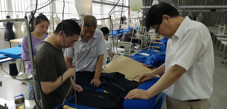 学员们不畏酷暑高温,在隆隆的机器声中刻苦训练,有的专门练习拉链的安装技巧,有的则在分析袖口的制作要领。指导教师也耐心地巡回指导。希望通过十天的紧张培训,学员们能提升技能,取得更大的进步。