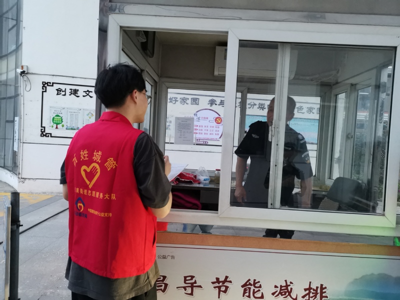 通过对于防汛工作的学习,陆亦尘同学进一步希望可以投身到防汛抗洪的一线去。在与物业商议后,以社区志愿者的身份,参加到了小区的防汛工作中。