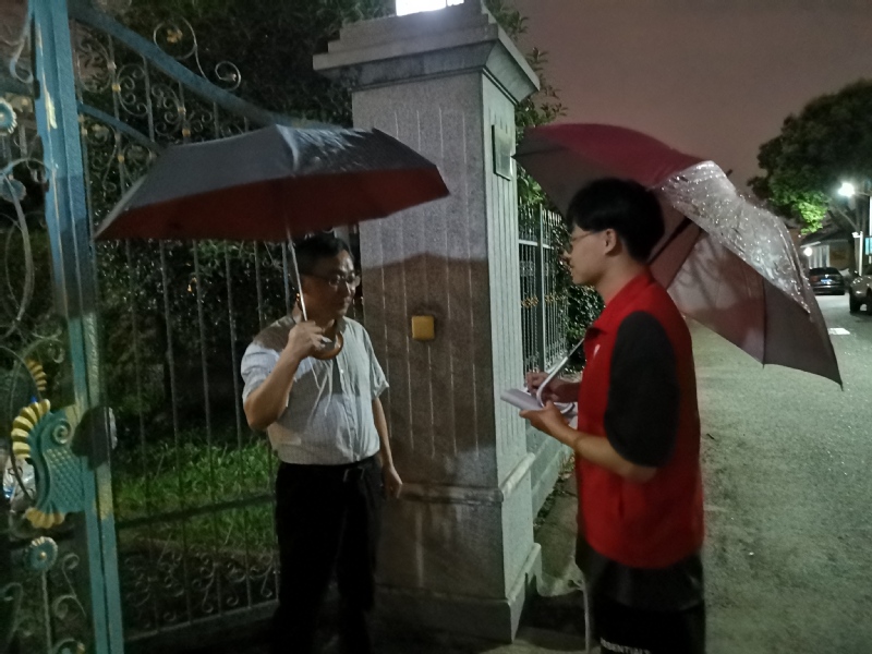 7月17日凌晨开始,雨势逐渐增大,陆亦尘同学早早的来到小区门卫处,通过监控了解实时情况。到了傍晚暴雨预警再次发布,便趁着雨势不大,与门卫一起,对各户再次进行了防汛准备的询问和帮助。