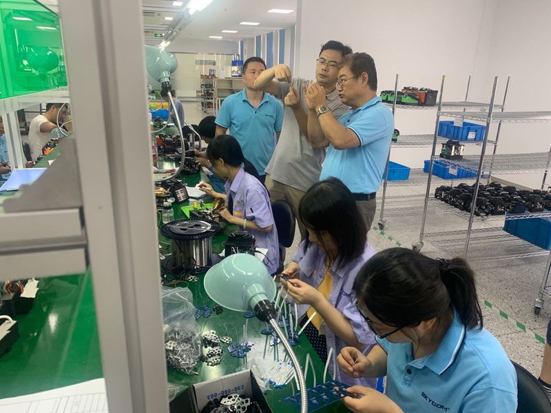 南京天兴通有限公司姚总经理和人事部门夏经理带领两位书记参观聋人大学毕业生的工作车间,介绍了公司产品的生产流程和销售过程。姚总经理介绍我们公司有11名聋人大学毕业生在公司工作情况,通过师徒结对的方式,使他们学会技术,融入公司发展中。