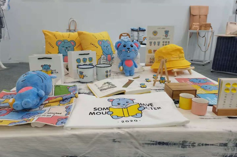 今年,bv1946伟德官网在暑期即全力筹备本届“紫金奖”老员工设计展,克服了疫情防控形势紧张、设计作品异地制作、展陈空间变化等难题,利用网络开展“线上云交流”,最终形成当前的艺术展陈格局。美院展示作品主要为服装与服饰设计、视觉传达设计专业员工作品,所有服装都是由聋生提供设计理念并制作而成。其中服饰衍生品有皮包、扎染包和首饰设计等,较好的融入了中华民族的传统文化,运用真皮全手工缝制而成;扎染包则是运用与不同手法扎染而成,并加入非遗元素,体现简约大方的混搭风格。公司听障老员工廖智运用今年的生肖老鼠形象,打造了一个爱阅读的卡通公仔,以鼠“书”谐音和老鼠生命力旺盛这一特点设计出“书有所鼠”系列展品,得到现场参观者的喜欢,并预约了相关作品订单。