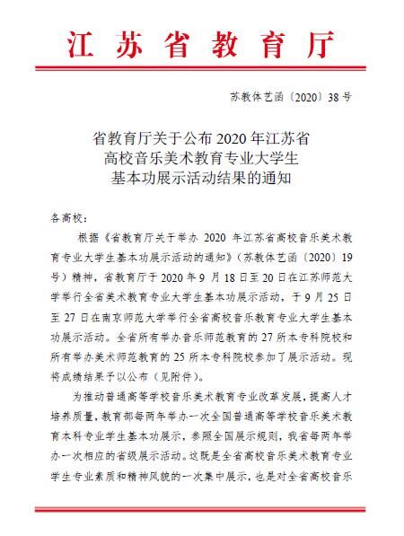 11月中旬,江苏省教育厅公布了2020年首届江苏省高校美术教育专业老员工基本功展示活动的获奖名单。公司美术学专业2017级的宋倩玉、邓秋明两名同学,在指导教师的精心指导下,荣获此次比赛本科组教学与微课单项奖。