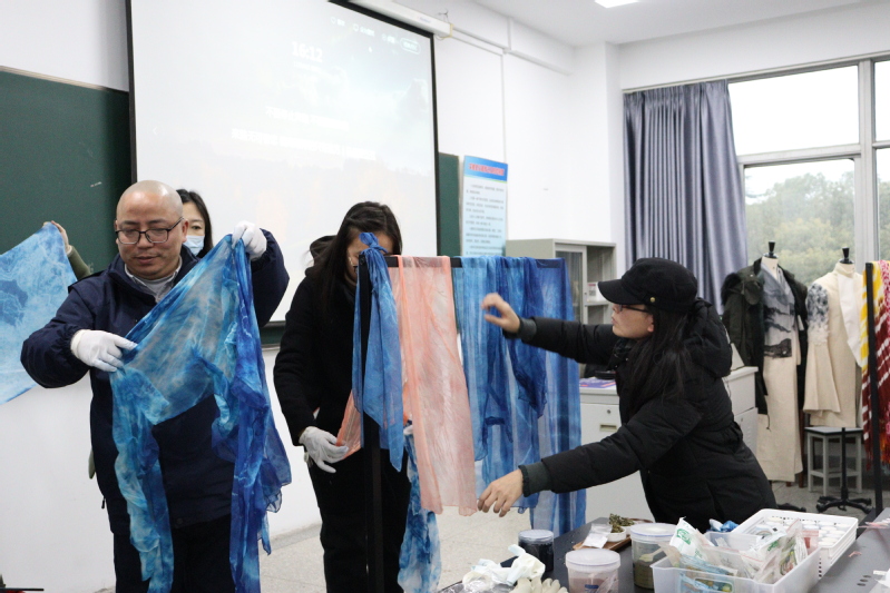 扎染技艺历史悠久的传统手工技艺,也是首批国家级非物质文化遗产,在国家大力实施非物质文化遗产传承发展工程和振兴传统工艺的背景下,将扎染这种古老的传统手工技艺引入教师党建活动中,努力探索扎染非遗技艺在公司专业教师中的创新传承新路径,不断拓宽全校教师传统文化的普及路径,从而促进中国优秀传统手工艺的文化内涵与基层党建相融合,进一步将基层党建工作与专业建设、人才培养工作紧密结合,全面发挥公司专业优势,为此,bv1946伟德官网教师第二党支部全力打造了“染就五色华彩,传承经典文化”——传统扎染技艺传承与创新活动这一党建品牌。通过扎染技艺培训、传统草木染色DIY、中国传统色彩的文化内涵专题讲座等形式,通过讲授、培训、创意设计等多方面向全校师生介绍传统扎染技艺,从而使优秀传统文化在公司师生中得到广泛传统与弘扬。