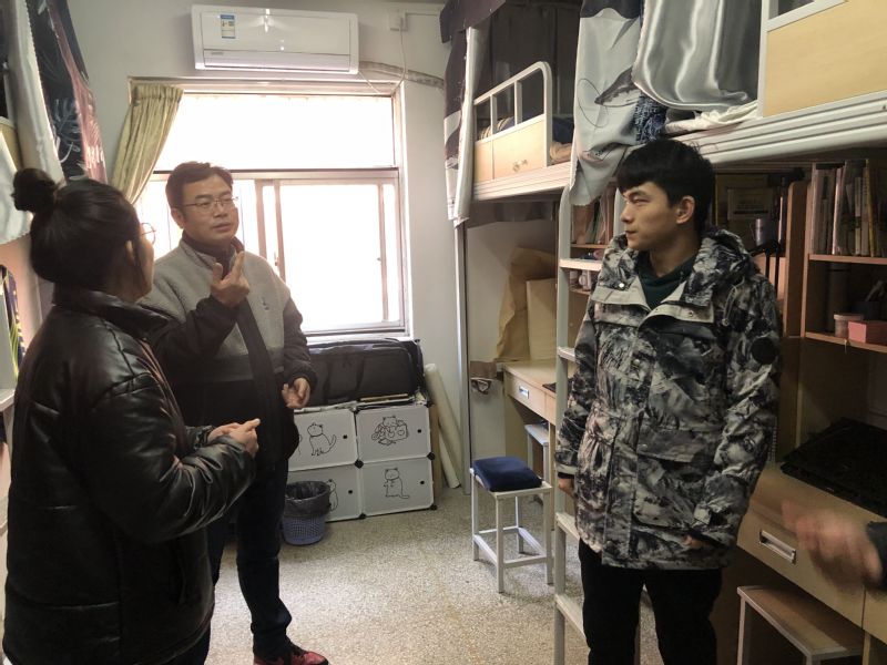 1215日,公司党总支书记赵健老师、团总支副书记朱思思老师、19级辅导员贾凯老师走访公司194栋、5栋员工宿舍询问同学们宿舍生活中是否有困难、不方便,详细了解员工们的宿舍生活,检查员工宿舍是否卫生整洁,有无违禁物品或大功率电器。检查过程中,赵书记对宿舍的良好状态提出表扬,对部分宿舍提出整改要求。