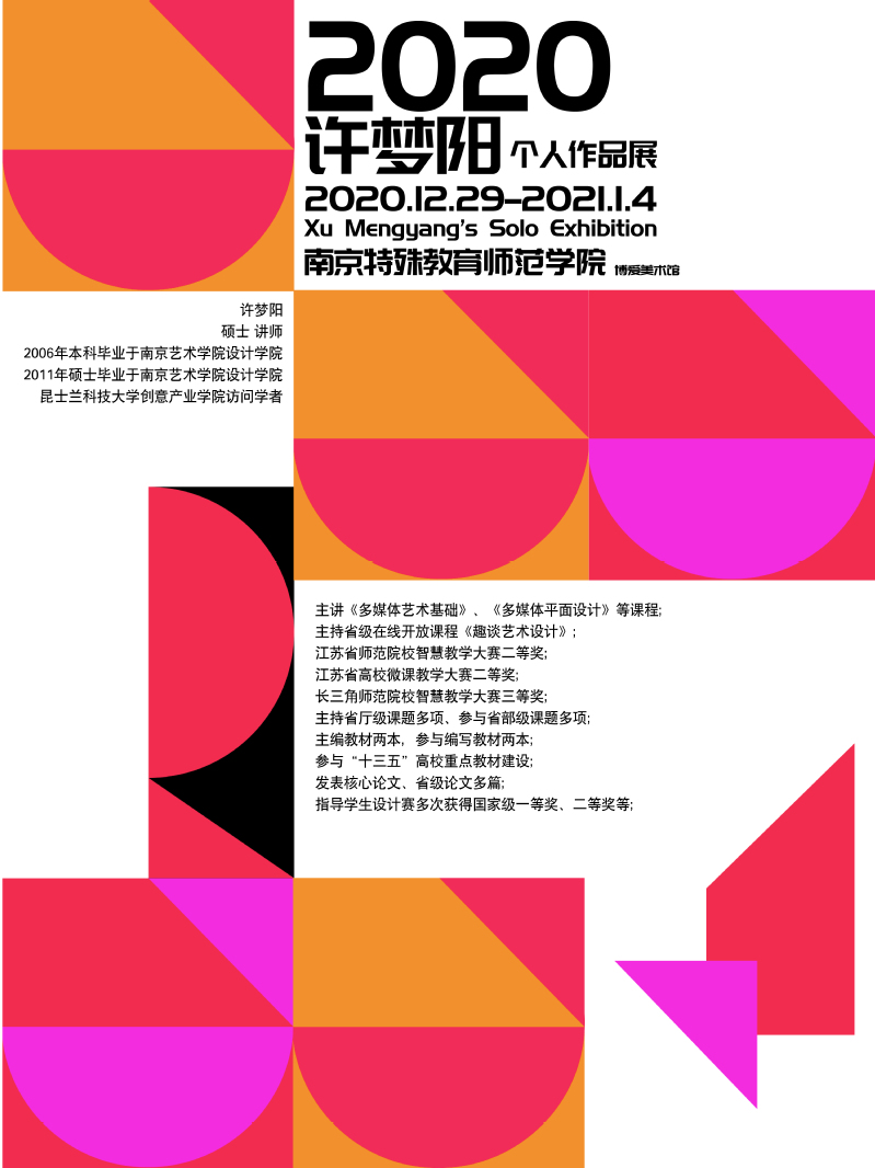 展览作品充分体现了许梦阳老师近年来的设计实践研究成果,具有较高的艺术性和创新性,反映了其致力于在审美反思中领悟艺术设计的本质;从心理感知的角度探讨新的设计形式;从媒介技术的角度展现出设计的力量;在数字时代的当下,探讨设计的转型与设计美的新范式。