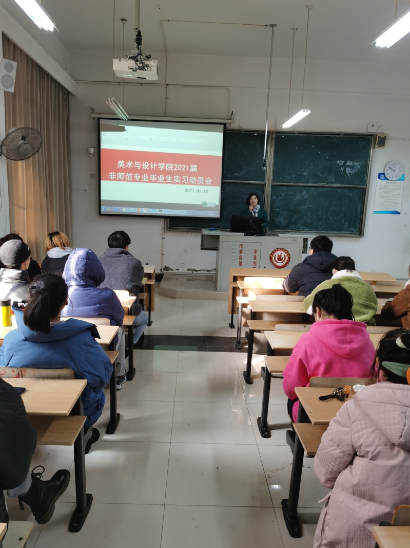 黄一莉副经理作为实习工作的副组长,向同学们介绍了毕业实习的目的与任务。提出希望通过系统的专业训练和实践,使员工们在政治思想上、业务能力上得到全面锻炼,熟练掌握相关专业技能,初步具有独立从事工作的能力。视觉传达专业系主任李艳老师向同学们强调实习手册的填写要求及提交时间等重要事宜,就实习形式、实习内容作了详细地介绍,对实习日程和任务进行了安排和部署。丁宝龙副书记对2018级毕业生同学进行了毕业实习安全教育,嘱咐同学们在实习期间注意人身安全,严格落实疫情防控等工作。