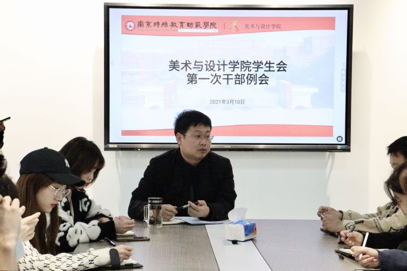 2021年3月10日下午2时在实训大楼美术馆召开bv1946伟德官网员工会2021年春学期第一次干部例会。参加本次会议的有公司党总支副书记丁宝龙老师,团总支书记朱思思老师,员工会主席各部门部长等