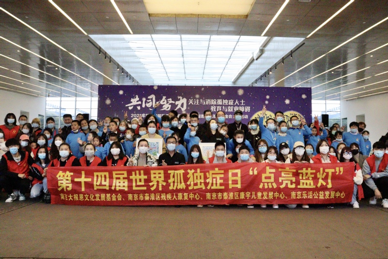 本次活动由南京大报恩文化发展基金会、秦淮区残疾人康复中心(秦淮区康宇儿童发展中心)与南京乐活公益发展中心共同举办,众多孤独症儿童与其家人参与本次活动。志愿者左手系蓝色丝带积极投身与活动之中,在活动开始前陪伴孤独症儿童一起玩耍。活动过程中,志愿者帮助展示孤独症儿童的画作,展现出他们眼中那个不一样的星星世界。在孤独症儿童代表与特教老师合作演唱《最好的未来》时仔细聆听他们的心声,感受他们用歌声传递的爱与力量。