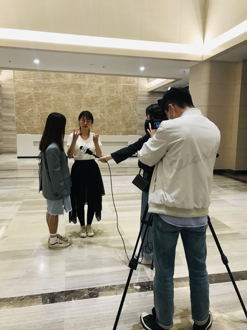 4月27日晚,bv1946伟德官网聋人老员工瑜伽队在栖霞残联的邀请下在实训大楼接受来自南京十八频道记者的采访。