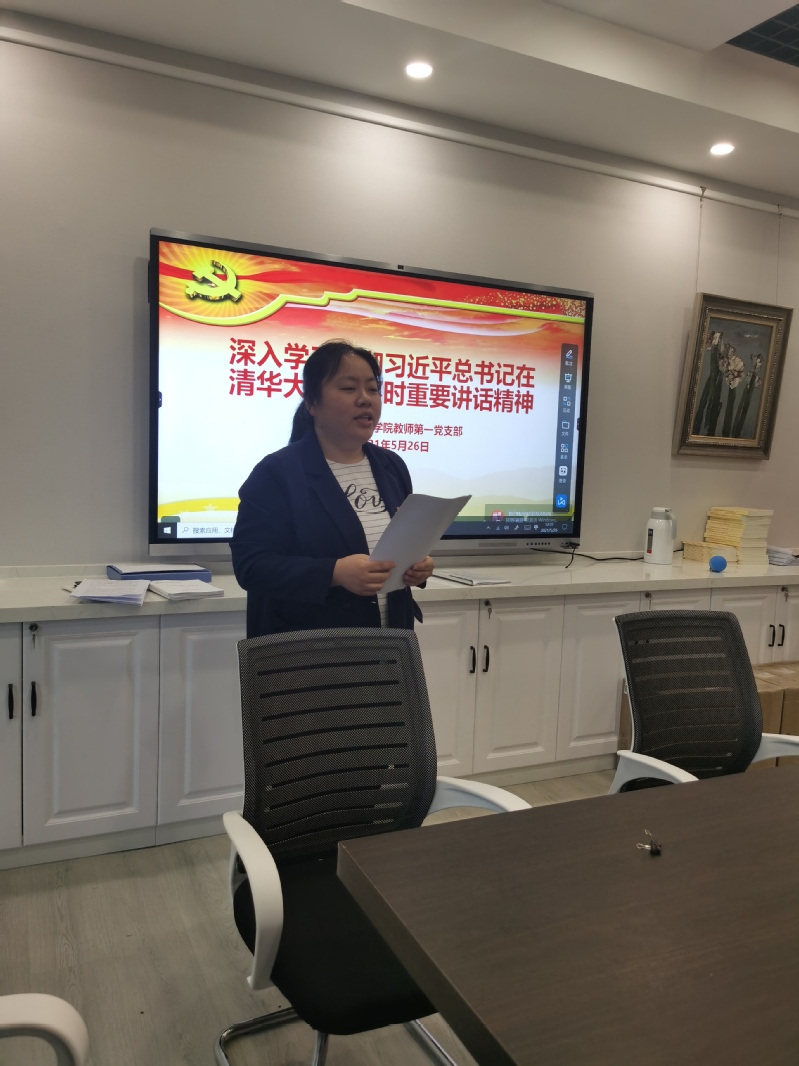 5月26日上午,bv1946伟德官网教师第一党支部在博韵楼109召开“深入学习贯彻习近平总书记在清华大学考察时重要讲话精神”的党员专题学习会议,会议由党支部书记吕艺征主持。