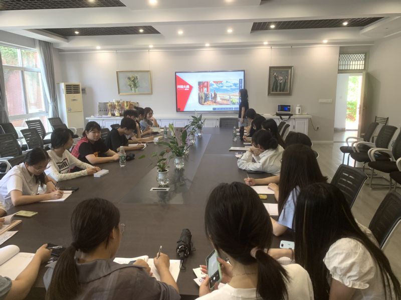 学习会上,周淼围绕开国大典的背景、选时原因、过程、意义等四个方面展开。她提到,开国大典作为新中国成立的象征,宣告了人民当家作主的时代到来了,中国成为真正具有独立主权的国家。从此,中国历史进入了新纪元,中华民族在党的领导下,开启了从站起来、富起来到强起来的崭新篇章。当视频中毛泽东主席向全中国、全世界庄严宣告:“中华人民共和国中央人民政府今天成立了!”时,党员们心潮澎湃。五星红旗在天安门上空缓缓上升时,党员们的民族自豪感顿时在心底萌发。会议的最后,周淼结合专业特点,带领大家欣赏了董希文的油画作品《开国大典》,从作品的构图、创作手法、人物塑造等方面详细讲述了1949年10月1日,毛泽东主席在天安门城楼上宣读中央人民政府公告,宣告中华人民共和国成立的庄严时刻。