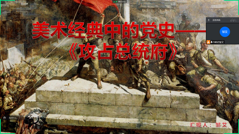 11月14日,bv1946伟德官网员工党支部开展了“美术经典中的党史:《攻占总统府》”党员专题线上学习会,会议由员工党员邹艾主讲。