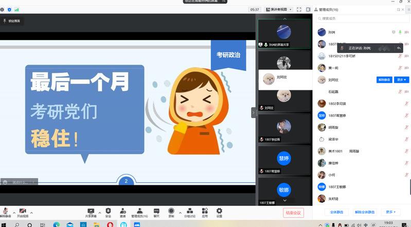 为帮助2018级考研同学掌握冲刺阶段政治知识与考试相关注意事项,明确奋斗目标。1125日,bv1946伟德官网邀请奇林教育资深教师孙洲开展《2021年考研冲刺阶段政治课》辅导讲座。bv1946伟德官网毕业班辅导员金诚立、bv1946伟德官网18级全体考研同学以及部分19级同学聆听讲座。