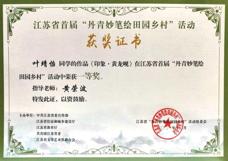 喜讯:公司员工在江苏省首届“丹青妙笔绘田园乡村”活动中斩获一等奖