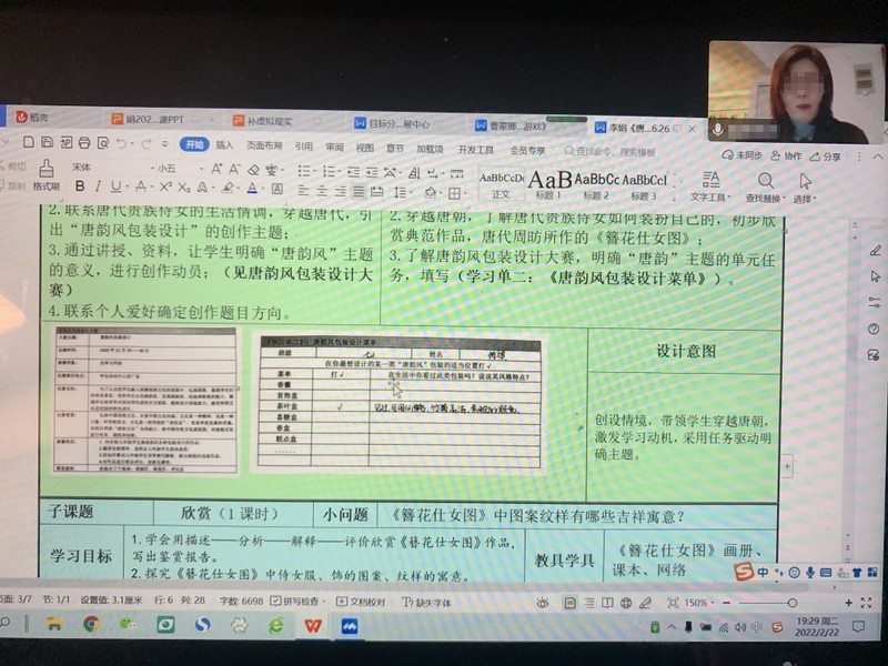 李老师还指出:当下中小学优质课评选大趋势是以大单元赛课的方式进行,这对在职及未来的教师而言既是机遇也是挑战。她以自己跟随王大根教授的学习成果:初中美术《仕女·簪花》大单元教学设计为例,引导员工分析学习对象知识技能现状,将教育心理学与课程目标的设计相融合,最终在突破大单元教学设计的难点的同时全面提升员工五大核心素养。