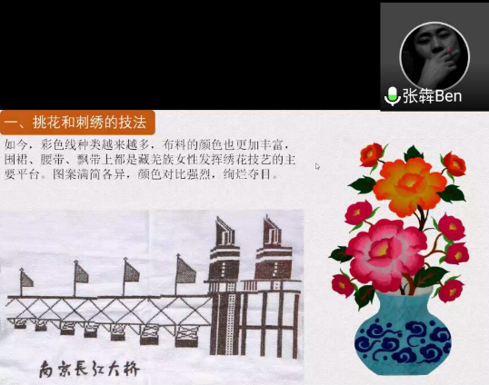 本次会议围绕“川西北藏羌族服饰图案装饰特点”展开,对藏羌族服饰图案特色进行漫谈。张老师首先发掘了藏羌族的历史服饰材料、样式和图案,利用图文并茂的方式,为同学们摹画了较为完整的古藏羌以“披毡”为代表的服饰;接着为我们普及了中华人民共和国成立以后藏羌族人民服饰也跟随着潮流时尚化:花边上的刺绣增多,图案更加丰富,民族气息和时代气息更加浓郁了起来;老师还讲解了服饰图案装饰是其民族世界观和民族心理的物化,不仅能够反映出民族世界观和宗教信仰,还能够折射出他们独特的审美情趣和审美心理,研究藏羌族图案装饰也是研究藏羌族传统文化的重要渠道;