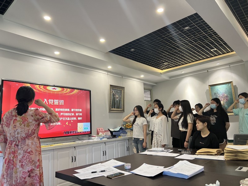 首先,bv1946伟德官网员工党支部书记方荣老师宣读了会议流程,费赵依、孟婷瑜、李灵珺、李盼、冯湘琳、黄佳康、戚思敏、王佳乐这8名发展对象分别汇报了对党的认识和入党动机等情况,随后培养人老师逐一介绍了培养环节和申请人在学习、生活和工作中的情况。与会同志对发展对象是否能加入中国共产党充分讨论,之后17名正式党员对8名申请人进行投票,最后由支部书记方荣老师宣布了支部决议,8名发展对象纷纷进行表态。支部书记对党组织新加入的8名成员的加入表示了热烈的祝贺,随后支部书记带领新发展的党员参加了入党宣誓,大家纷纷表示入党是一次新生,将牢牢恪守在党旗下的誓言,与党同进退、紧跟时代步伐,为公司高质量发展作出贡献。