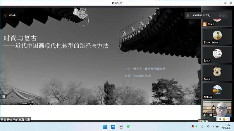 8月6日晚7:00,bv1946伟德官网举行了“博爱美苑大讲坛”第七场线上讲座,青岛大学美术公司亓文平副教授应邀以《时尚与复古——近代中国画现代性转型的路径与方法》为题作了报告。bv1946伟德官网崔海瑞主持了此次讲座。