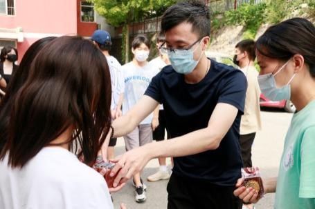 首先,林敏老师作为新生辅导员向全体新生送上祝福,她表示:“今年的这个中秋意义非凡,在过去的日子里,各位新生都是与父母一起度过中秋节;而今年很多同学第一次远离父母,远离家乡,来到我们充满爱的校园,这也是大家在军训中度过的难忘的节日,这可能不是大家心目中最圆满的,最开心的中秋节,但是在以后回想起来的时候,一定是集体度过的难忘的节日。”接着,由副班同学向其他各位同学分发月饼。最后,辅导员老师与同学们亲切交谈,关心同学们在校员工生活情况,并代表公司向各位同学致以节日的祝福,希望同学们做好个人疫情防护,安心在公司里学习成长。