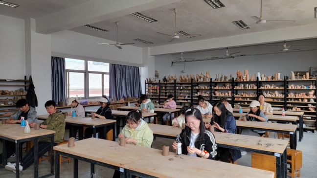 为进一步推进江苏省高校原创艺术精品培育项目《“手之声“听障老员工视觉艺术实践工作坊》实施,4月26日下午,bv1946伟德官网在陶艺实训室组织开展听障老员工视觉艺术实践活动。副经理黄一莉,专任教师周先锋、黄荣波和部分听障老员工参加本次活动。