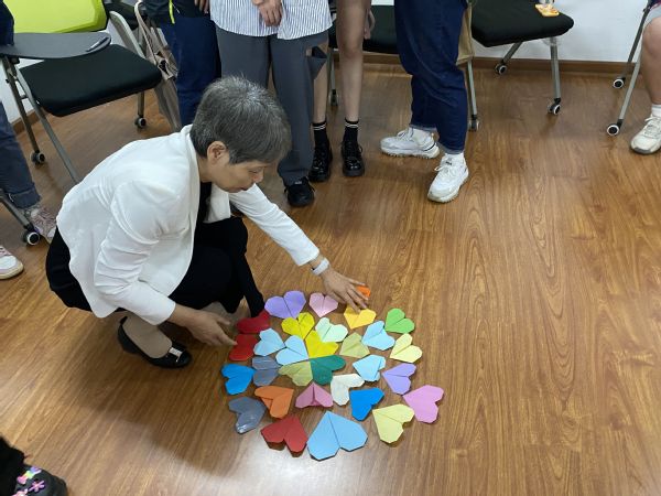 李媚老师在向同学们讲解此次情绪梳理和疗愈体验的心理运作机制时说道,我们将内心需求投射到具体的意象,也就是“折纸心”这件物品之上的时候,也就产生了“仪式感”和“信念感”;通过团体之间意象物品的交换与互动,能够从深层次引起情绪的流动,从而引导我们的情绪往积极的方向发展。放松环节之后,同学们不约而同的觉得近期的一些负面情绪得到了纾解,效果非常神奇,大家感觉又能够活力满满的面对当下的学习和生活。