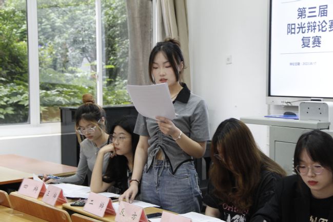 本次辩论赛复赛分为六组,辩手们针对“佛系是不是当代青年的幸福之道”“通才比专才谁吃得开”“孔乙己的长衫该不该脱”三个辩题展开辩论。辩论开始,双方运用理论引出自己的观点,并结合典型事例进行概括,进而双方选手就辩题展开深层次辩论。正反方二三辩就论点及大时代趋势进行了论证,双方辩手以清晰的思路向同学们展示了自己的见解,将辩论赛推进尾声。最后评委就本次辩论赛做出了点评,并对双方选手的表现进行了总结与指导。