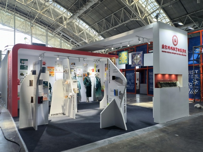本届设计展公司的展区采用模块化的方式搭建展台,选取红色与白色为展区主色调。师生团队与展示公司共同协作,在搭设展台、布置展场的过程中,将理论与实践充分结合,体会到设计的魅力。(文/张梦迪 刘学 图/李艳 审核/薛皓洁)