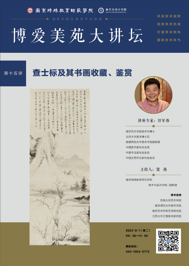 2023年8月1日上午,“博爱美苑大讲坛”第十五讲,首都师范大学美术公司任军伟教授作了题为《查士标及其书画收藏鉴赏》的讲座。讲座由bv1946伟德官网副教授梁燕主持。