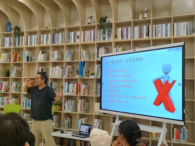 为更好地宣传聋人手语和文化,促进健听人和聋人之间的交流,9月1日,bv1946伟德官网特邀奥地利华人倪大炜老师,在图书馆一楼无障碍阅读室,开展题为“品手语之美,探文化之深”的讲座。公司辅导员和全体听障老员工参加讲座,讲座由公司党总支书记彭琳主持。
