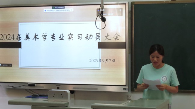 为保障教育实习工作顺利开展,调动员工参与教育实习的积极性。美术学(师范)专业于9月7日下午2点在博韵楼105开展了2020级美术学教育实习动员大会。此次活动由何旭主任主持,公司黄一莉副经理、何旭主任、林敏老师分别作了动员发言,并对全体20级实习生提出了希望与要求。会议采用线下、线上同步进行的方式,由20级全体实习同学、全院校内指导老师和带队老师参加。