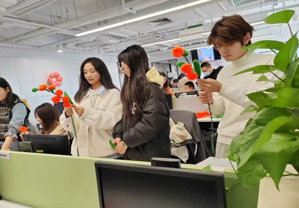 在“开放日”活动中,我院员工积极参与其中,参观公司、了解公司一些特色项目及产品等,参与员工均表示收获满满。另外,公司三名同学在此次活动中担任志愿者工作。负责指导嘉宾们完成“静谧之花”手工绒花制作。绒花制作有助于强化了手部训练,帮助大家认识自我并且放松缓解平时的压力,同时也是对中国传统非遗文化的宣传。活动顺利完成,受到参与嘉宾的一致肯定和好评,嘉吉总经理赵女士和嘉吉DEI(平等包容多元)主席石主席授予三名同学志愿者荣誉证书。