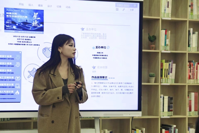 活动初始,通过主特人薛方怡同学的介绍,同学们更加深入地了解了蒋育杰同学在服装设计大赛中所取得的成绩,也为其他同学提供了宝贵的借鉴和启示。活动期间,蒋育杰同学分享了自己的参赛经验和心得,通过参加比赛的意义、学会分析比赛类型、如何发散思维及积累灵感三个方面展开介绍。蒋育杰同学以自己亲身经历,分享具体案例,向同学们展示了如何从日常生活中汲取灵感,如何发挥自己的想象力和创意思维,以及实际生活中如何不断尝试改进和完善自己的设计作品。她强调,参赛不仅仅是为了获得奖项,更重要的是通过参赛锻炼自己的创意和设计能力,提高自己的专业素养和综合素质。在活动中,蒋育杰同学还与同学们进行了互动交流,解答了同学们在服装设计方面遇到的一些问题,分享了自己的经验和建议。活动最后,同学们纷纷表示受益匪浅,对自己的设计能力和创意思维有了更深入的认识和提高。