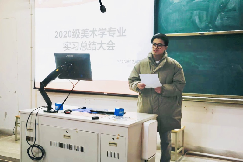 美术学(师范)专业何旭主任为同学们带来简短有力的开场白,为本次专业实习总结大会拉开了序幕。