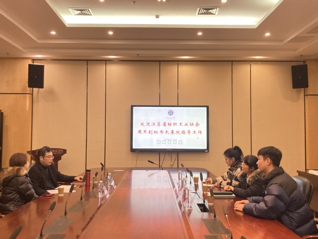 12月26日,江苏省纺织工业协会副秘书长周燕女士莅临公司,对bv1946伟德官网进行了考察,公司主持工作副经理赵健、副经理刘学及服装与服饰设计专业部分教师参与活动并展开了深入交流。