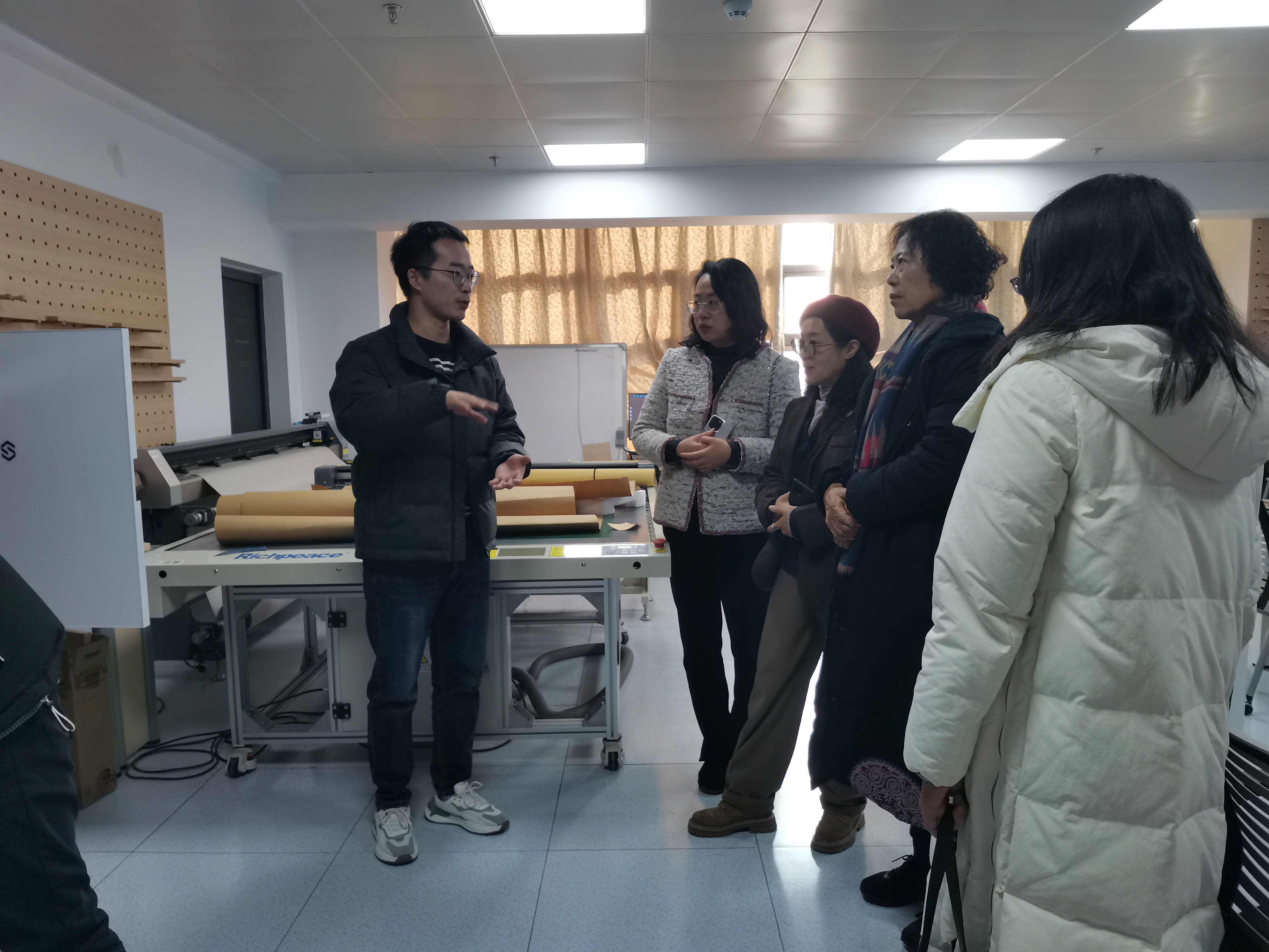 服装CAD实验室负责人靳伟老师介绍了项目的基本情况,新增设备对课程体系及人才培养方面将带来的积极影响,并对项目硬件和软件功能与性能进行了展示,验收小组认真听取了现场介绍。经过评议,小组成员一致认为项目整体完成度良好,达到了预想的要求与功能。建议后期能深度开发利用实验室资源,进行产教融合的良性运行。