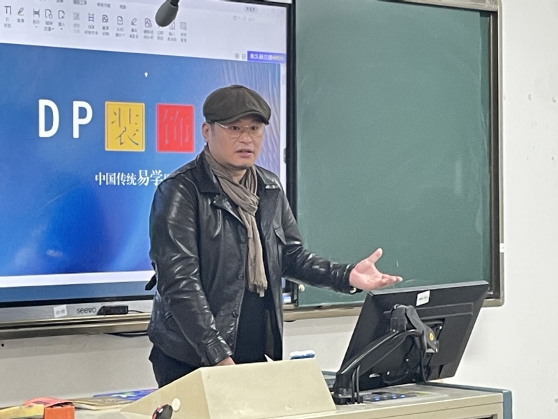 为丰富bv1946伟德官网装饰画创作课程资源,搭建校企合作平台,通过产教融合引导课程改革与创新,3月11日上午,美术学系邀请吉林省易经学会副会长、中国建筑设计标准研究经理春分院环境顾问、吉林省室内装饰协会专家委员会委员——钱致宇老师,为2021级综合材料方向同学们带来一堂内涵丰富的中国传统易学美学公开课。